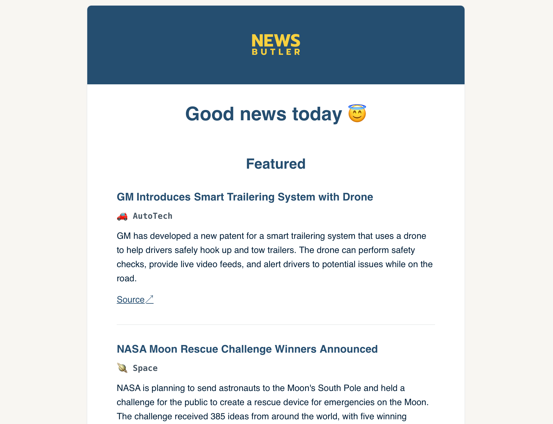 News Butler is fully functioning on its own. There is a pretty long backlog of things to improve, but I decided to invest my effort into the next project with a real business potential - Pulse Butler π